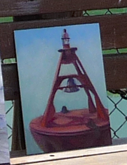 I didn’t paint this aboard a boat in the middle of a foggy sea. This huge old buoy (about 20 feet tall) is actually parked in front of Quinn’s Lighthouse in Embarcadero Cove near Jack London Square in Oakland but when I started painting it was so foggy we could have been at sea.
