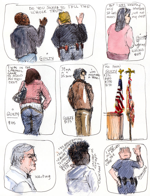 Guilty, guilty, guilty: Ink and watercolor in 6×8 sketchbook