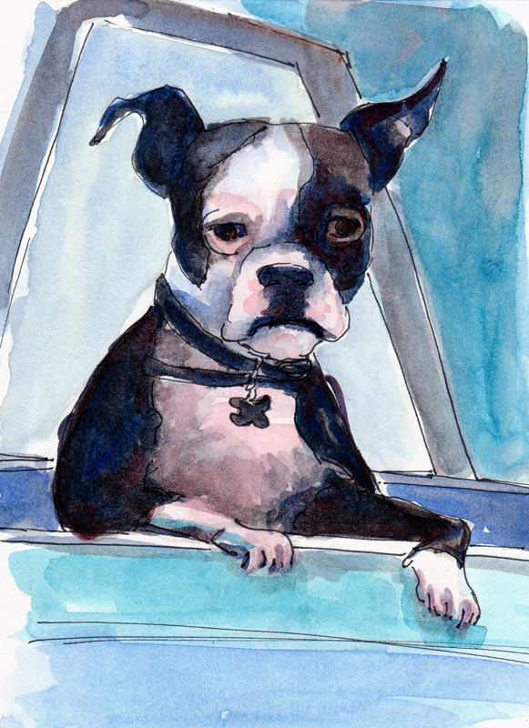 […] start posting on Boston Terrier Art. Feel free to comment on your thoughts on the art. Check out Jana Bouc’s Cool Dog in a Cool Car. I like Jana’s water color painting because it really captures the expressive look of a […]