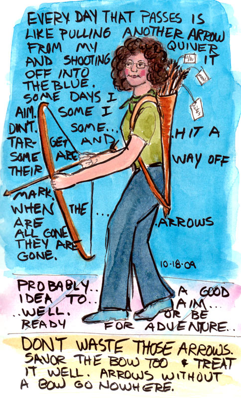 As I wrote that, I pictured myself with a quiver of arrows that represent my days, and each day I select an arrow and shoot it from my bow…and that gave me an idea for a sketch….
