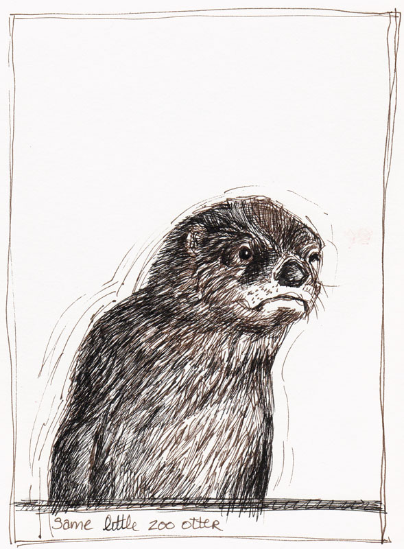 …but my son Robin did instead. And he took wonderful, soulful photos that he shared with me. So of course I had to sketch them, starting with this otter whose expression really struck me. It came out a little different in each sketch.