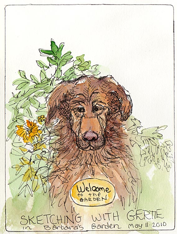 Thanks so much, Jana. Your writing and sketches make me really like my garden without thinking about the weeds that need to be pulled or leaves that should be raked. Gerti will have to work on her sitting still and posing instead of walking away after a few minutes. I was amazed you “caught” her so well in the short time she sat and looked at you. It was very fun to have you and your sketchmates visit. Come again!