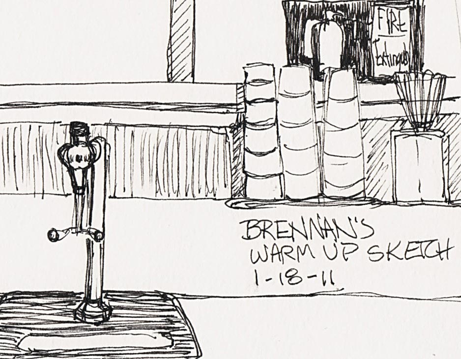 Sketching at Brennan’s Bar and Hoffbrau in Berkeley is always fun. When we met there for Tuesday night sketching last month Cathy had just returned from her sketching workshop that was held at Disneyworld in Florida so the first part of the evening was her amazing show and tell. You can see her Disneyworld sketches on our Urban Sketchers blog here and here and Micaela’s Brennan’s sketches are here.