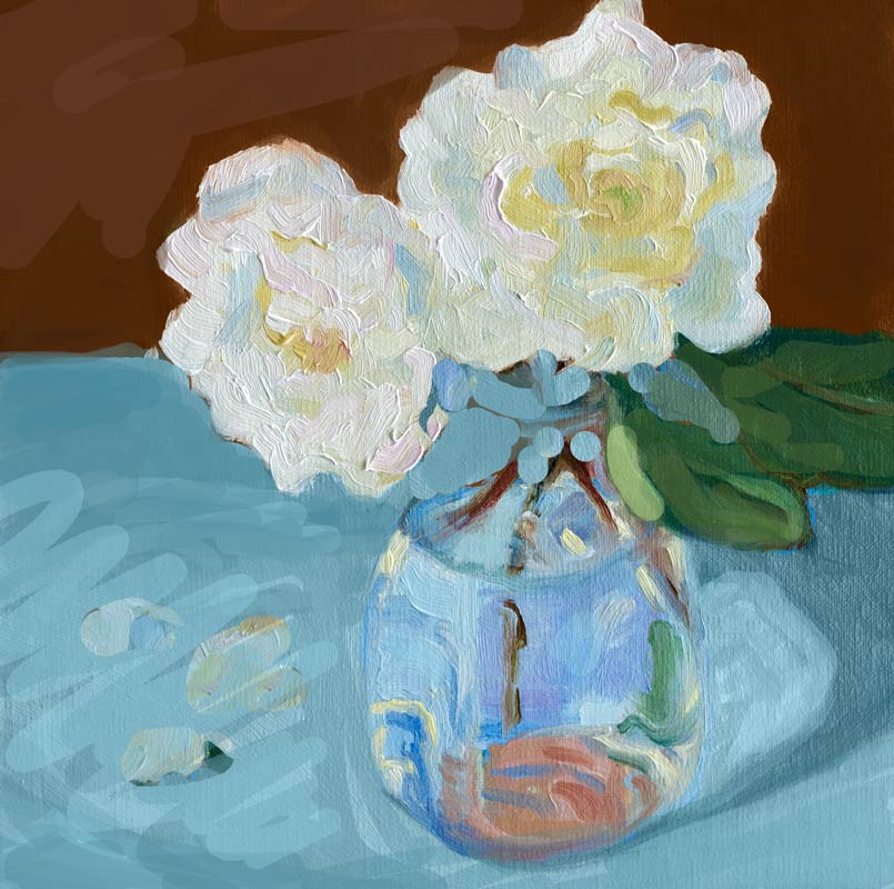 7 replies on “White Roses in Creamery Bottle (and painting process stuff)”