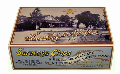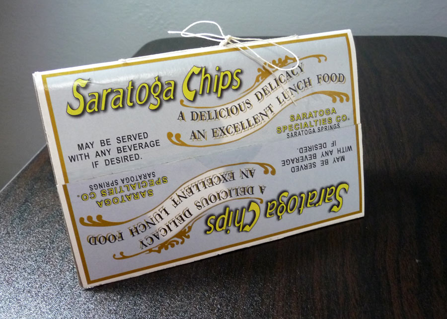 When my friend Mindy sent me a fun little gift box of potato chips (which were invented in her town, Saratoga Springs, in 1853–read funny history here), I was smitten by the cute box (photo below). Then I opened the box, saw the foil inner pouch and had to try to draw it (sketch above, on a red cloth).