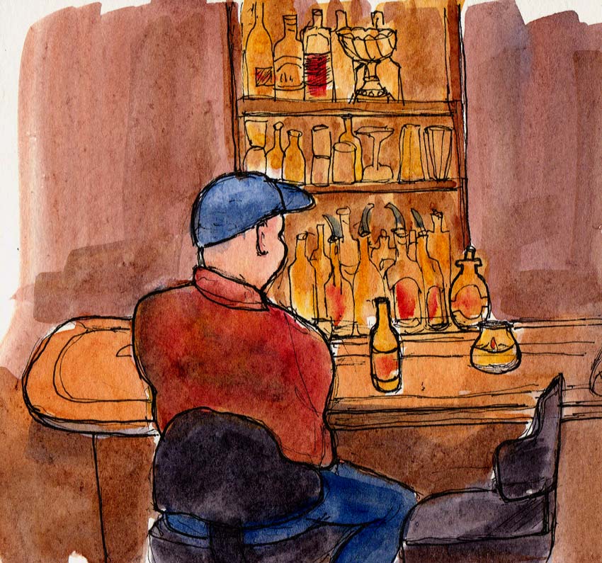 We heard they had free hot stew on Tuesday nights (S’tewsday) and thought that would be a good way to warm up. It turned out they don’t serve it until 9:00 so Judith and I shared a hot toddy (as opposed to a Hot Totsy which the bartender explained was served on fire). It was pretty dark inside and hard to judge the colors we were painting.