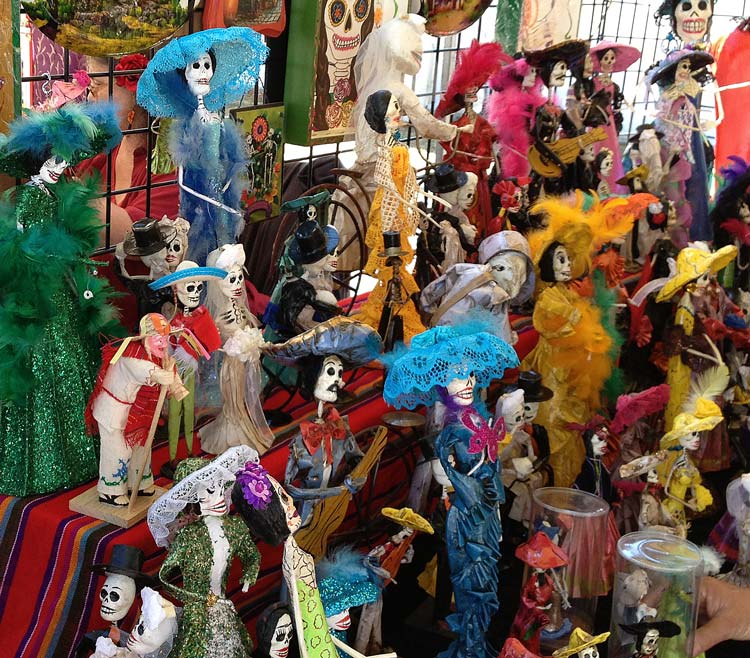 There were booths selling decorated skulls made of sugar, beautiful little skeletons in fancy dress, paper cut-outs, hats, jewelry and even paintings on black velvet of Marilyn Monroe and Elvis as skeletons.