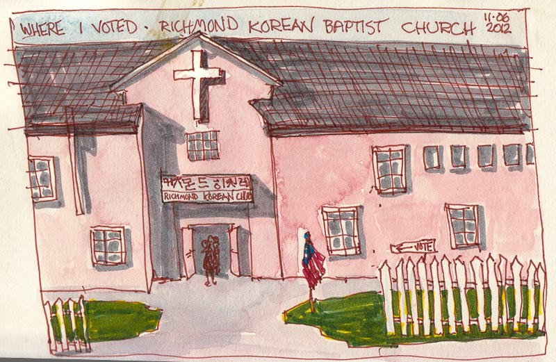 Polling Place-Richmond Korean Baptist Church, ink & watercolor