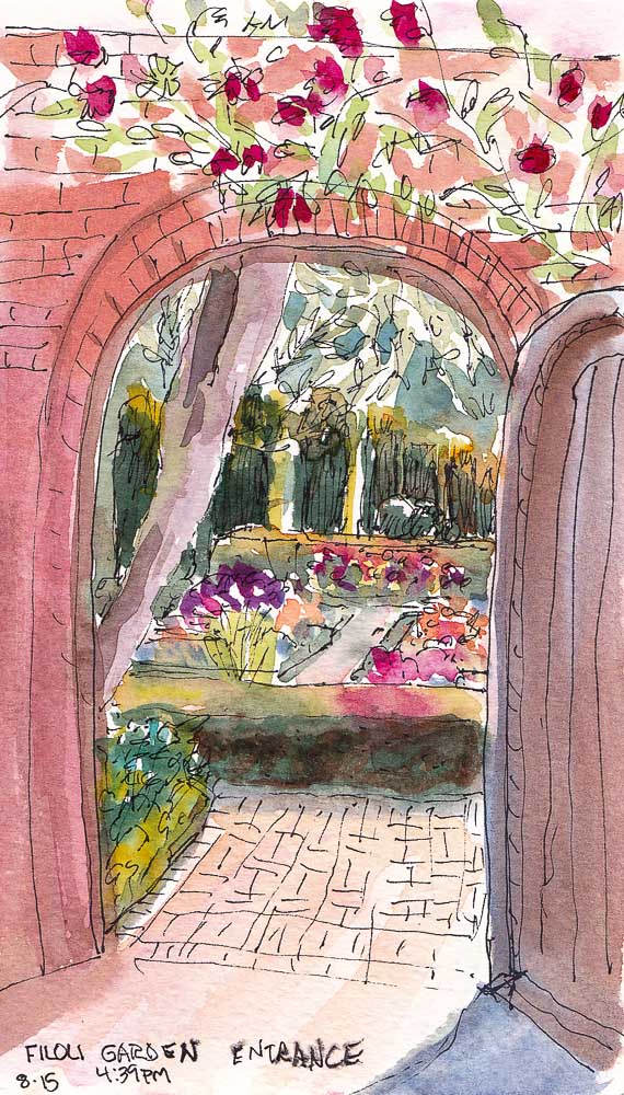 During a special after-hours access for artists event, we visited Filoli to explore and sketch this amazing historic site. I started by sketching the doorway to the walled gardens (above).