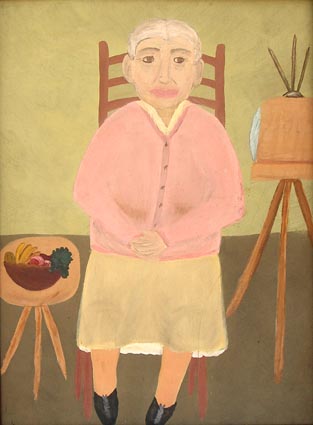She doesn’t paint anymore, but you can see a gallery of her artwork here from around the 1950s. Below is my favorite of her paintings: my grandmother Gertie.