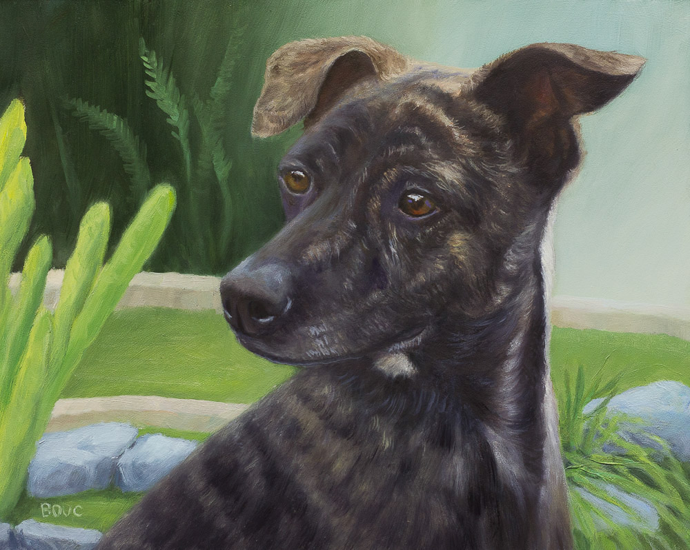 Portrait of Leo, Formosan Mountain Dog, oil on panel, 8×10 in