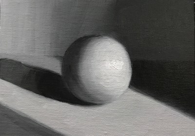 I had several challenges with the class. The first was the lighting situation in my studio. One of the keys to accurate color matching is having the same intensity and temperature of light on the subject, palette and easel. Despite spending hours and hours trying, rigging up all kinds of lighting and black curtaining, I was never able to truly achieve this. The second challenge was my own nature: I enjoy being playful with color, expanding on the color I see with a little exaggeration and imagination. Also another challenge: most of the work was done using a black-lined shadow box with fairly low lighting and I discovered how much I prefer lots and lots of light and white.