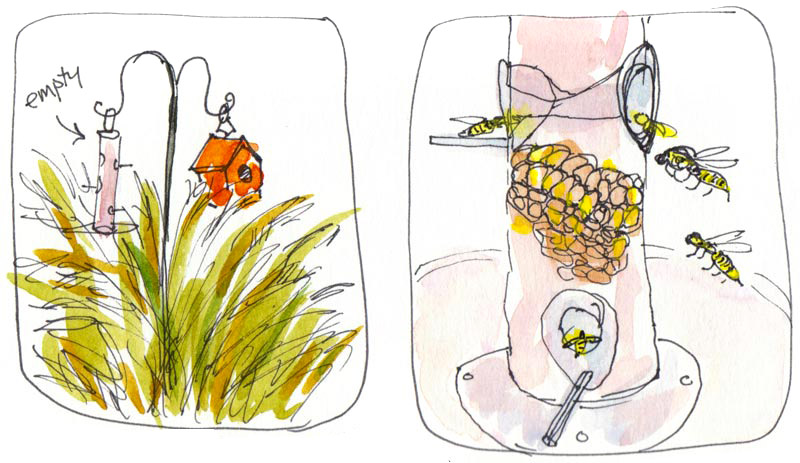 3. Millet grass grows under feeder ---> ---> ---> --->4. Wasps move in.