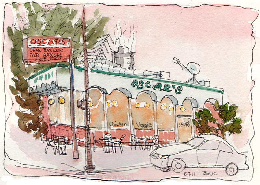 I was overly self-critical while I was sketching, wanting to get things right. Then I got my copy of The Art of Urban Sketching: Drawing On Location Around The World and discovered something wonderful: Of the two sketches of mine that Gabi chose for the book, one is very wonky and the other nicely organized. That helped me to see that there is room for both in my art life. Wonky is good! Getting it “right” is good too! Yay!
