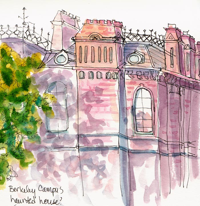 After an hour or two we connected with Paul again, walked over to Blick’s for Casey’s art supply shopping and then headed to Telegraph Avenue and the University of California campus. Casey and I found a spot we wanted to sketch on campus so Paul headed back down Telegraph to Amoeba Records, a huge used CD/record store.