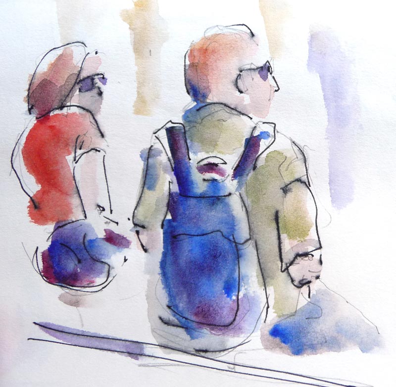 We strolled the street and then settled at Peets Coffee for coffee and sketching where we did the two sketches at the top of the post. Casey works quickly, with wonderfully expressive lines, and got in a few more sketches from Peets: