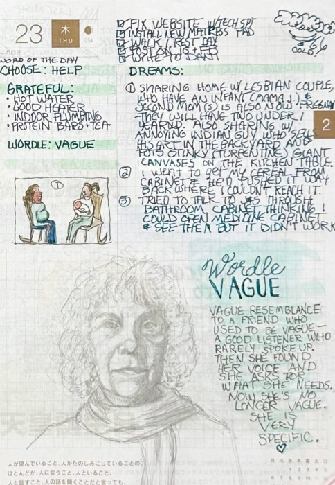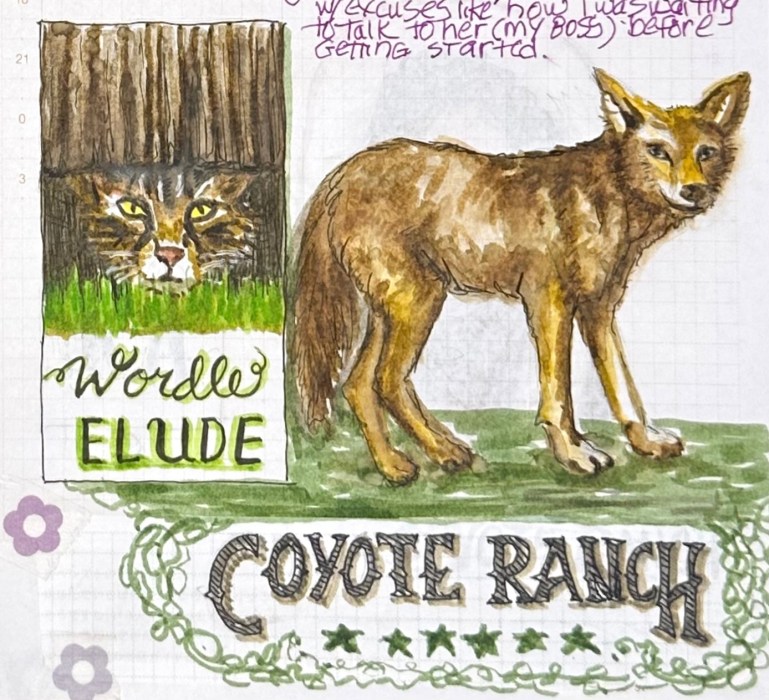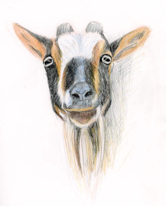 But I was delighted to find a new word for one of my favorite animals. Then it hit me: my last name, Bouc*, also means goat! (Billy goat, actually.) I immediately had to find a goat photo to sketch for the day’s self-portrait.