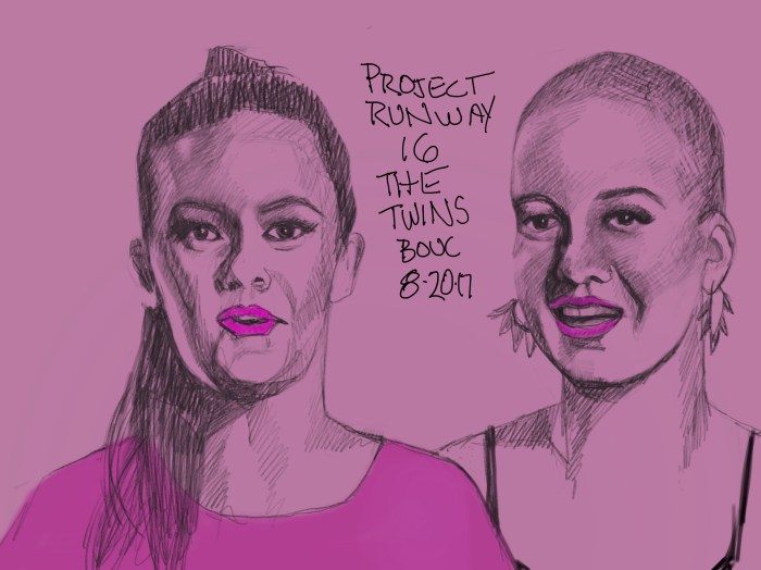 I’m going to be posting daily in order to catch up with a bunch of work done previously and never posted. Then I can be current everywhere instead of just on Instagram and Facebook. So here are some sketches I did from the TV while watching Project Runway’s last season. All were done on the iPad in Procreate last year! Above and just below the lovely Maragarita from Puerto Rico.