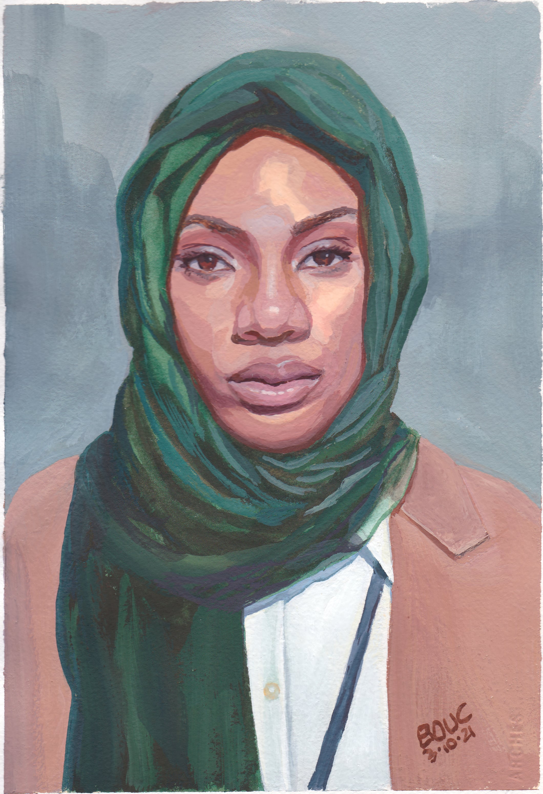 Interestingly, the 3-color limited palette I used for this painting was the same as the one I used for my painting of Dorothy, even though the two women look nothing alike. It’s a fun challenge to work with only a 3-color limited palette. (WN Raw Sienna, WN Perm. Alizarin, Winsor Blue Green Shade).