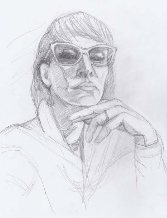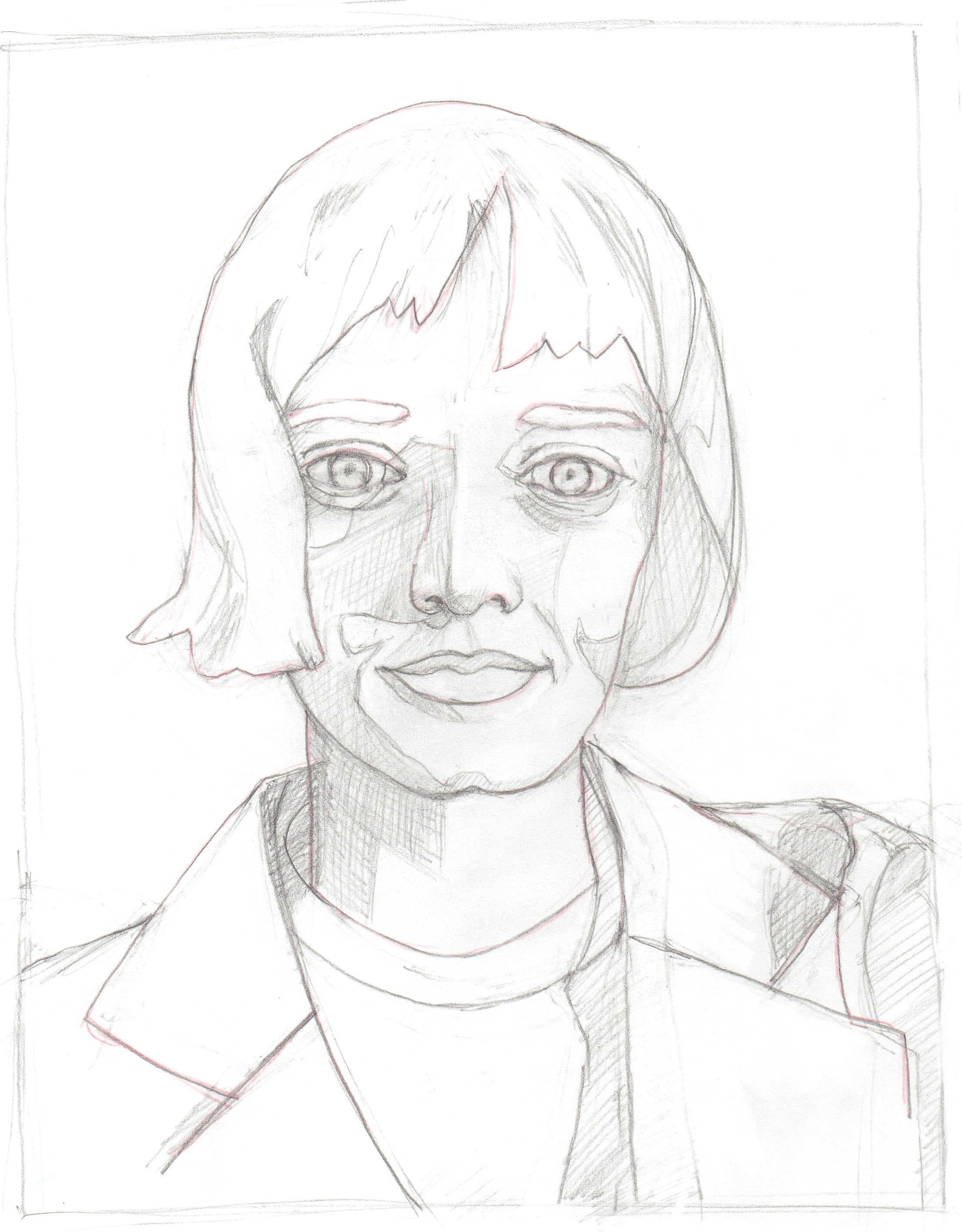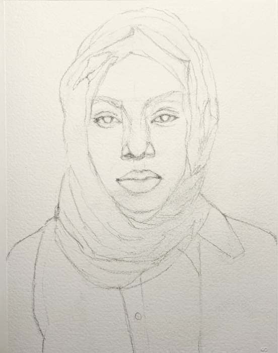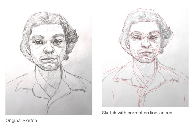 Above is my final sketch and below is my preliminary sketch, scanned into Procreate, with a tracing of the photo over it. I used it to check my drawing and then made the corrections to the final sketch above.