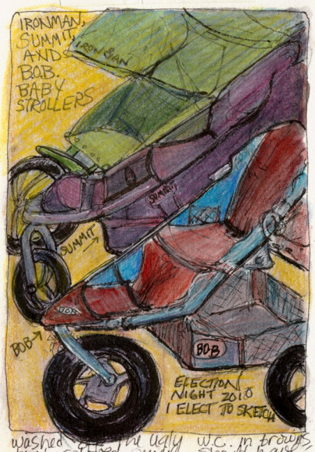 There’s a Starbucks at the other end of this block-long building and I ran down there to get a latte for the ride home and then almost missed the train. On the trip back we shared our sketchbooks and relaxed; such a pleasure compared to driving. I want to plan some more train sketching trips soon!