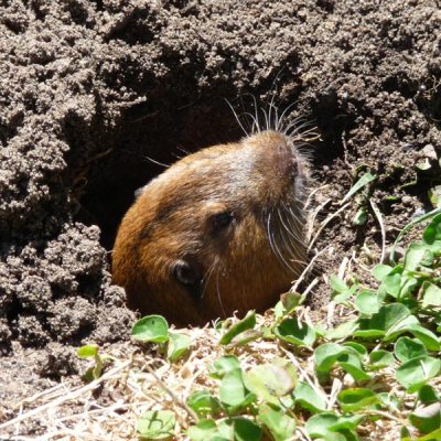 As we left the museum I saw a gopher pop his head out of a hole in the grass. He continued popping up and down, busy pushing dirt out of his hole. I thought he was so cute until I saw the close up (below) on the screen.