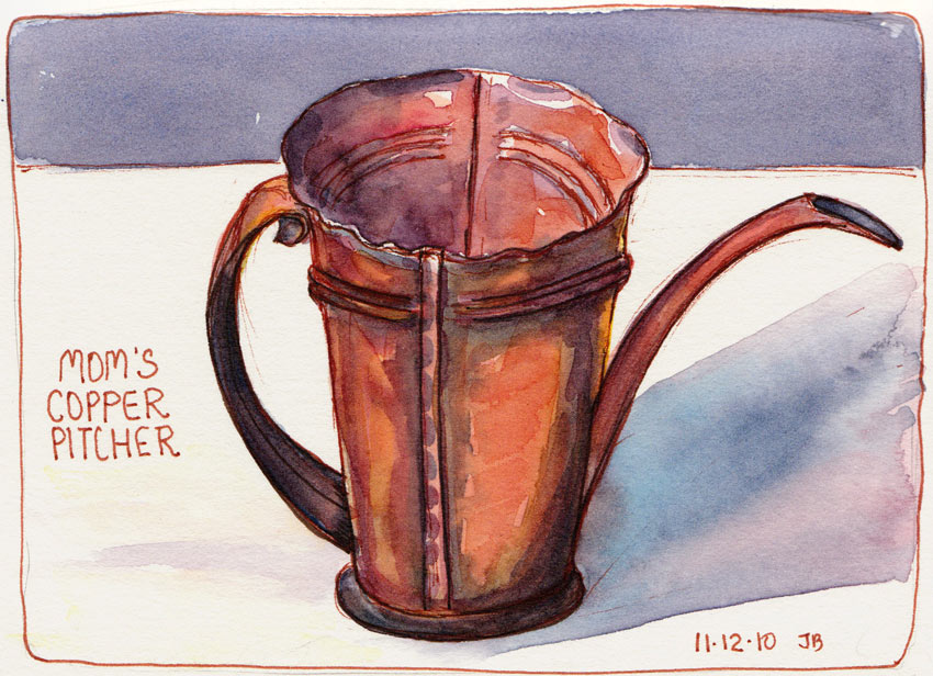 I needed to draw and paint something fun and refreshing after the ordeal with the last oil painting. I reached into my still life cabinet and pulled out this fun little pitcher. This gave me the idea to draw my complete inventory of still life items, one at a time. And that gave me the idea to draw everything I own. I wonder….