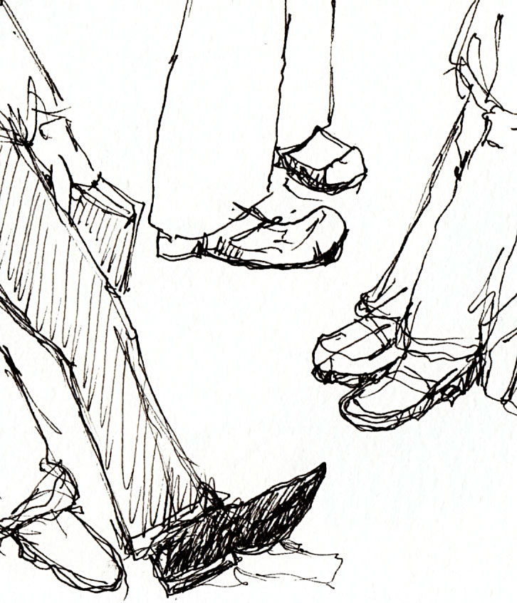 I was amused by the variety of guys shoes, from super point to square toes to waffle soles.