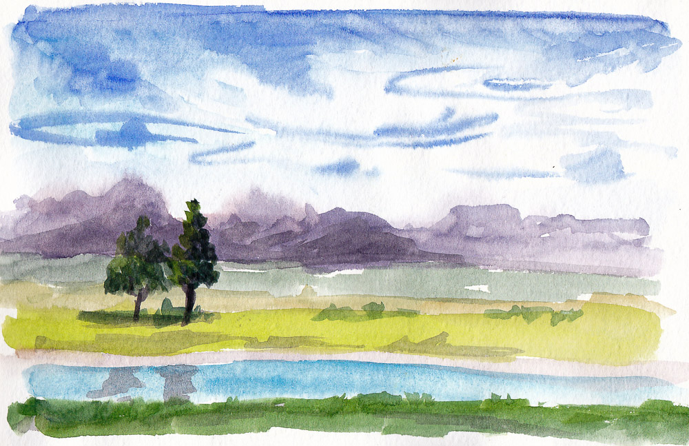 I’m using a page-a-day Hobonichi “Cousin” journal with weird, very thin, lightly-gridded paper along with fountain pens, drawing pens, watercolors and Tombow markers.