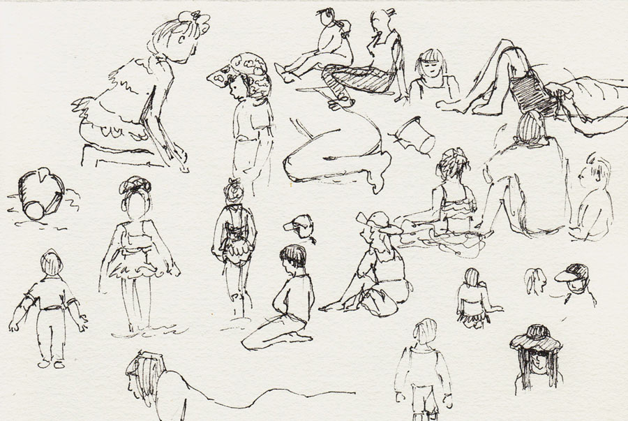 After a little picnic the girls gleefully headed into the water, I reached for my book and discovered I’d forgotten it. Fortunately I had my journal so instead of reading a book I drew in one.