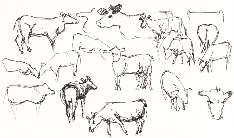 When I finished I noticed a herd of cows grazing on the hill beside the parking lot and walked over to the fence to sketch them. As you can see, I know nothing about cows and these gals weren’t holding still for me.