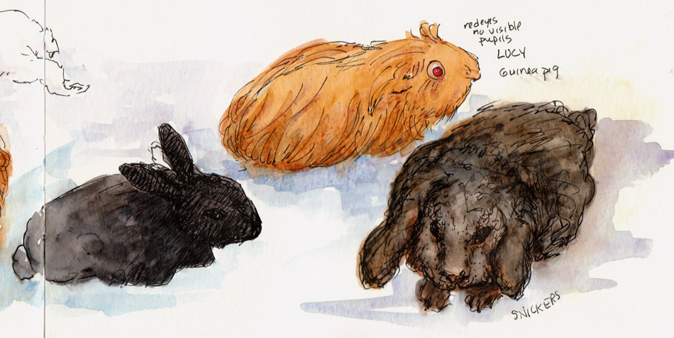 I think my favorite sketch is Lucy the Guinea Pig. I was surprised to see she had no visible pupils in her little red eyes.