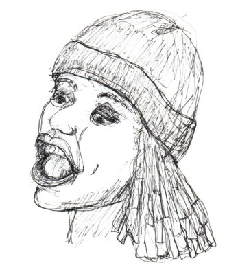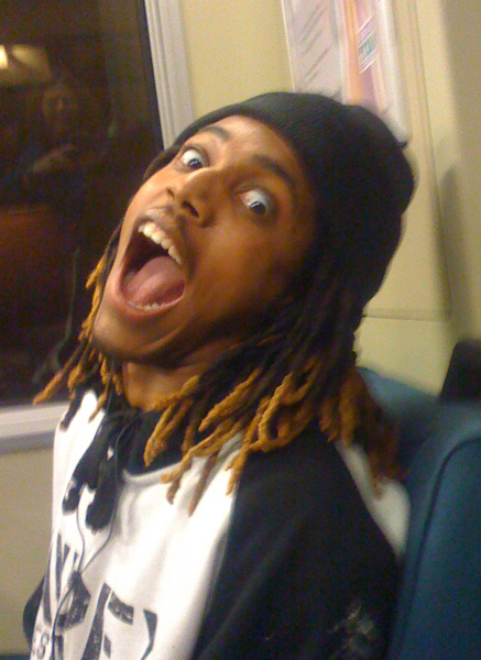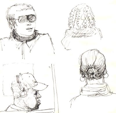Riding our subway known as BART the other day, I sat down beside a young man who was talking to his friend in the next seat. I asked if they wanted to sit together and they made a joke about not liking each other (actually it was a racist joke that shocked me at first when I thought they were serious—they were of different races ). So I sat down and took out my sketchbook like I usually do. The guy beside me insisted I draw his friend and his friend immediately struck a crazy pose for me to draw.