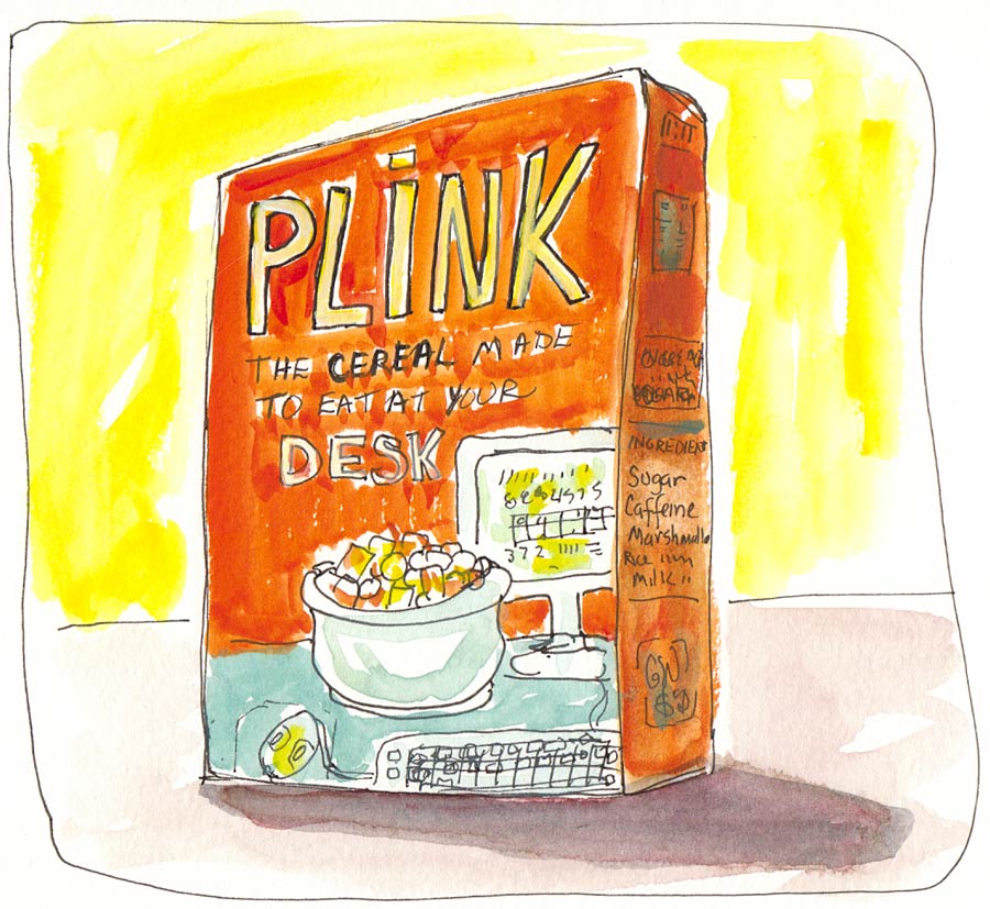 I had a dream last night about a new cereal called “PLINK” that was designed to be eaten at your desk. I think the name of the cereal comes from the sound the computer makes when a new email message arrives.