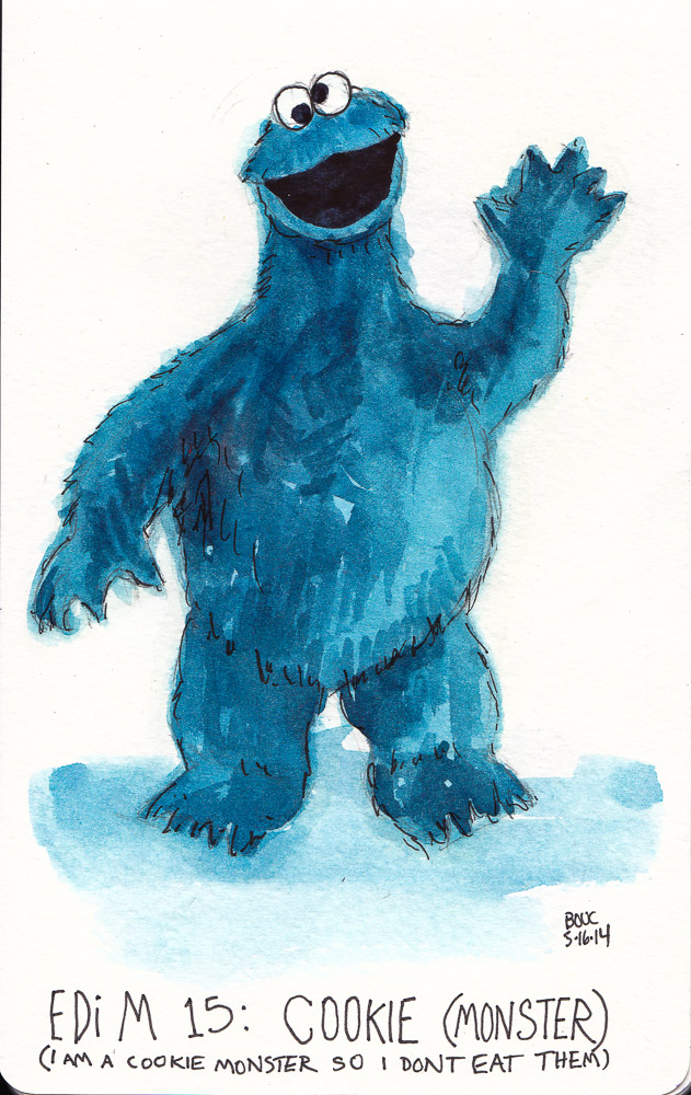 EDiM 15 Cookie (Monster), ink and watercolor, 7×5 in