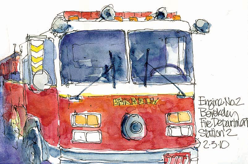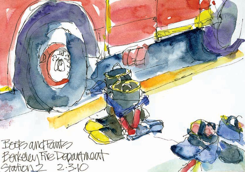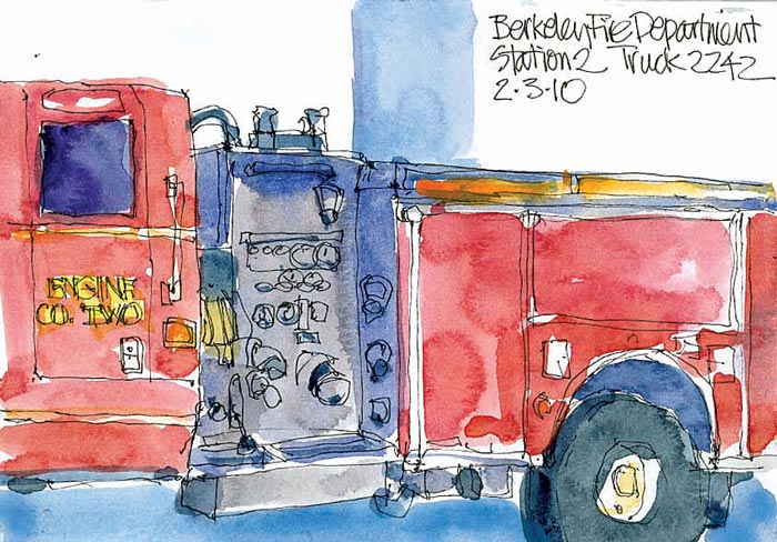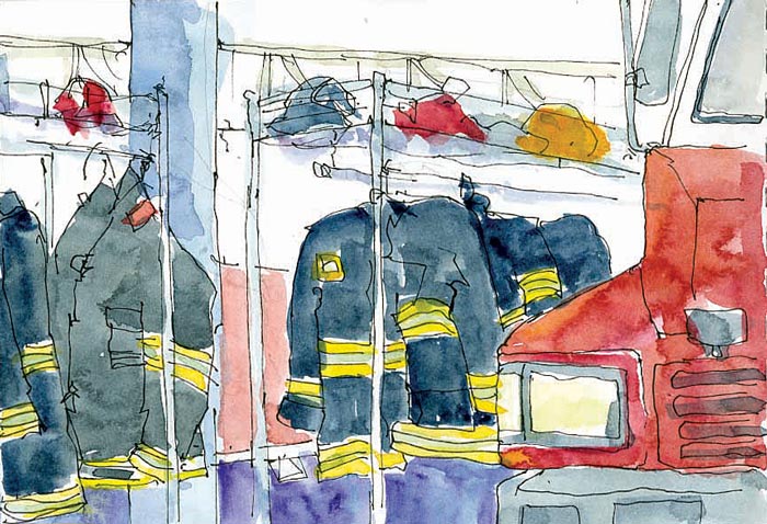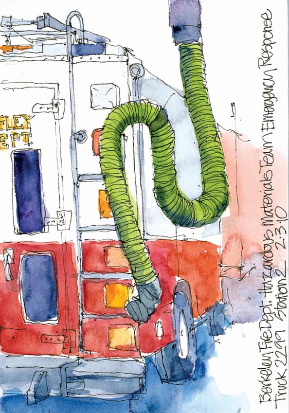 When she was sketching this (above), one of the firemen told her that when they are learning their equipment they also sketch all the gear and label it to help them study.