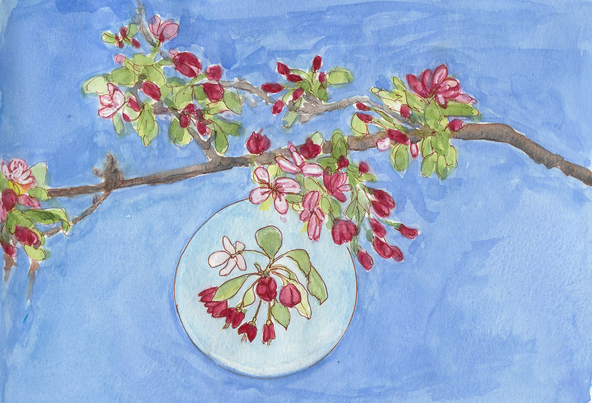 This wasp just wanted nectar from the flower. My friend Barbara just spent big bucks getting rid of hundreds of wasps that built nests in her attic and were invading her house. We don’t know what they wanted. This is the last of the leftover sketches from our endless summer, now being called California’s worst drought in 500 years.