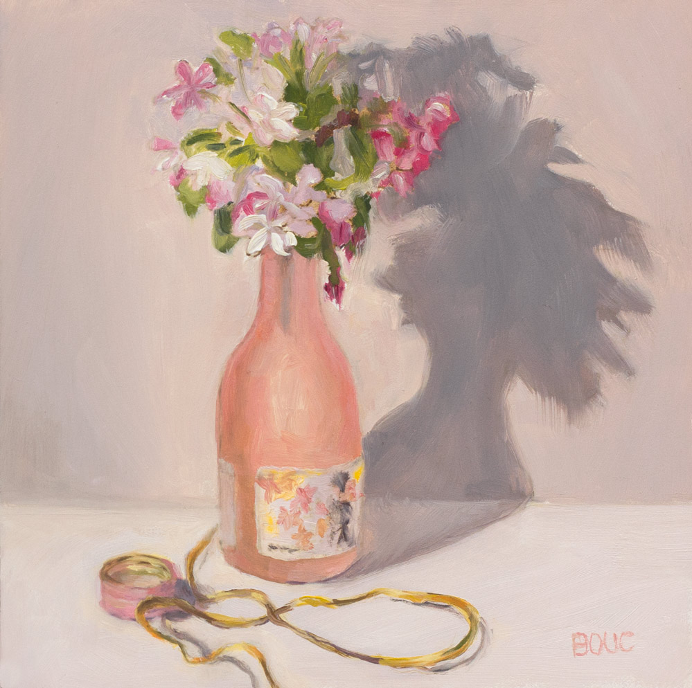 Meanwhile, I’m still spending time previously used for sketching out hiking with my pup (but from now on I’m going to start carrying my sketching gear on our hikes and stop halfway to sketch). Thinking a morning 4-6 mile hike would tire her out, I’ve been painting in the studio in the afternoons while she attempts to re-landscape the yard. She’s a perfect angel in the house, but when we’re in the studio (that opens onto the backyard) she goes wild, digging up and chewing on random junk from under the trees and bushes that circle the yard, despite her comfy bed in the studio, fully stocked with chew toys.