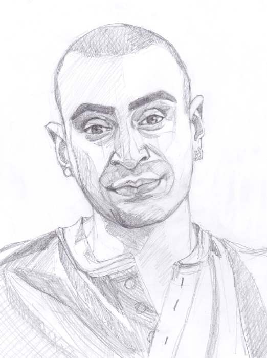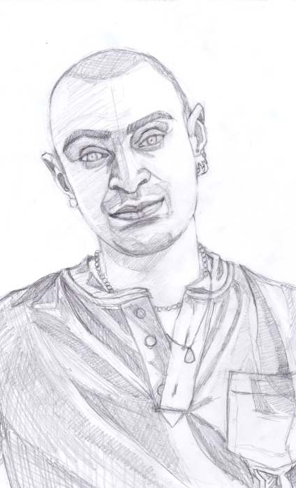 Below are my two preliminary pencil drawings and the painting, second layer done. I should have left it as it was—blocky, but fresh. Instead I labored over it, trying to match values and colors to the original despite the crazy palette.
