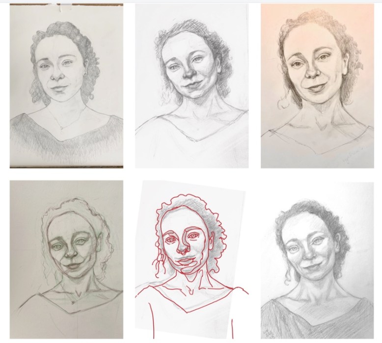 I worked on making a portrait of Aleksandra over and over for a couple of months (see the terrible work below). I finally surrendered and chose a different photo of her. The drawing above went smoothly and I did it in one afternoon. (Sktchy photo reference for above sketch.)