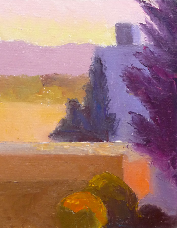 …And like the angels who’ve held up signs in my art life lately, including Kathryn Law and Ed Terpening who’ve both helped me to a breakthrough in my understanding about why simplifying is important in oil painting, especially when painting plein air. I’m always attracted to details, and so I’ve fought against that principle, and then fought my paints trying to put those details into my paintings.