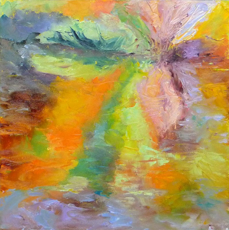 I’d worked quickly, using a palette knife, going for big shapes of color. I should have stopped there and gone for a walk. But instead I messed around for another hour and muddied up the design and the colors: