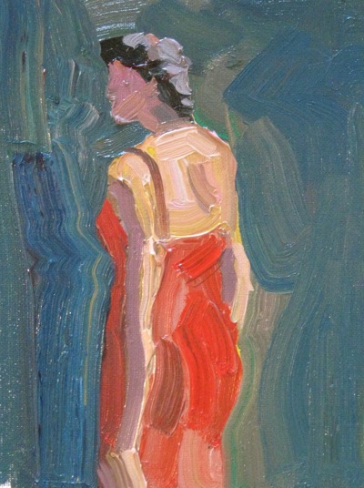 I showed her the image on my phone and asked if she’d pose for me like the woman in the painting and she agreed. I don’t have permission to post her photo so all I can show you is my sketch, which is a study for a larger painting.