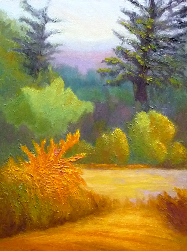 I worked from the reference photo a bit in the studio but then just started addressing the painting’s needs instead of what was in the photo. I tried not to mess with the hills and trees that I’d painted on site because I liked the way they were loosely painted in.
