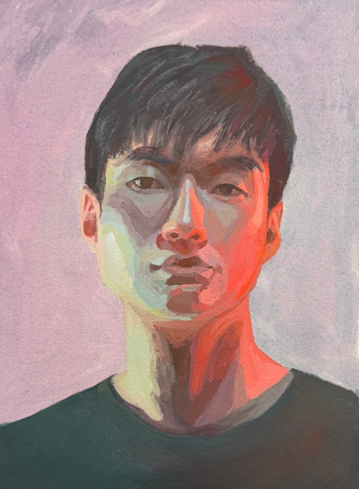 What was I thinking? The reference photo1 had strange lighting. From the left was a cold, greenish light, and from the right a very red light. To make the painting even more “fun,” I chose a weird limited palette2.