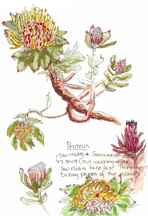 My plein air painting group held a workshop today at the beautiful Legion of Honor in San Francisco’s Lincoln Park at which Ed Terpening demonstrated. After an hour some people set up and started their own painting but I watched the full demo so had only enough time for this quick sketch. At the critique Ed pointed out the problem with the size of the guys in the foreground compared to the cars which made me laugh.