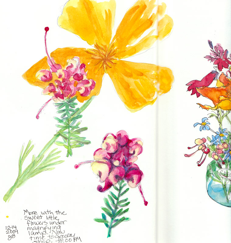I took notes during the demo on a page in my journal that had an unfinished sketch done with green pen which is what that green mark is under Ed’s name.