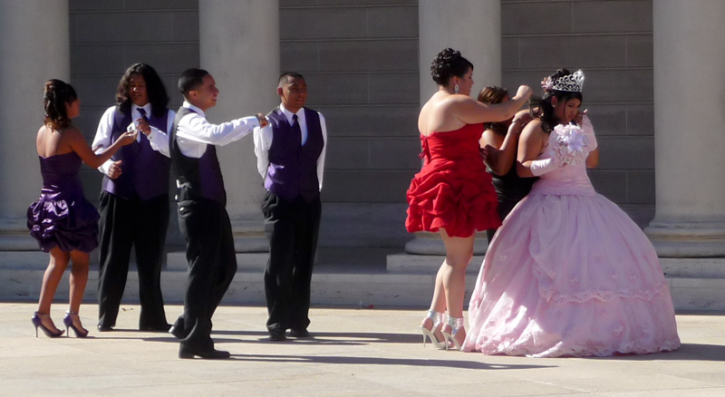 The Quinciañera is a Latin American tradition for celebrating a girl’s 15th birthday. Formerly a religious celebration, it has become an obscenely expensive event that can match weddings in cost and extravagance, including ball gowns, banquets, limos, huge parties, photographers, bands and more. I wish they’d save their money for college.