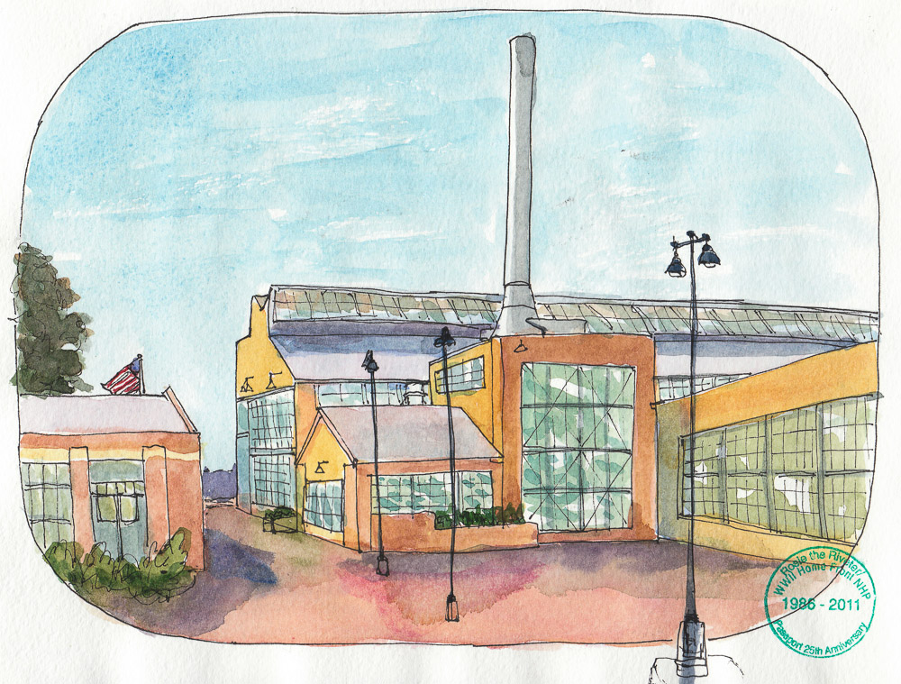 Despite typical glitches there was some bonus fun, like the caricature sketch below of me, my tree and my dog, drawn by a funny, toothless guy from London who hung out nearby while I painted for a while. Then a dance troupe showed up to practice, led by a woman who annoyingly ended every sentence with a question mark. They were there to plan their performance for an upcoming festival at Albany Bulb (a former dump and now a rustic park by the SF Bay.)