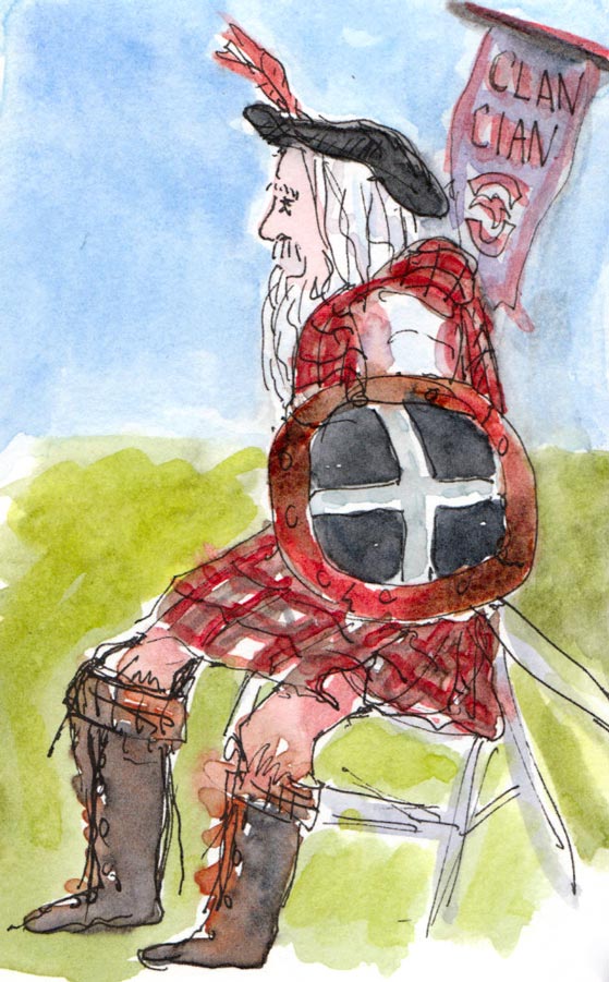 Moving on from the bagpipers in the last post to some of the other characters I met at the Scottish Festival. Except for the kilt, this guy could have been in Mad Max. I asked him about his metal cup since nearly every person in character either was carrying one or had one clipped to their belts. I asked whether drinking was an important part of the culture. He said no, that when you were served beverages you were expected to have your own goblet or mug, they weren’t provided.